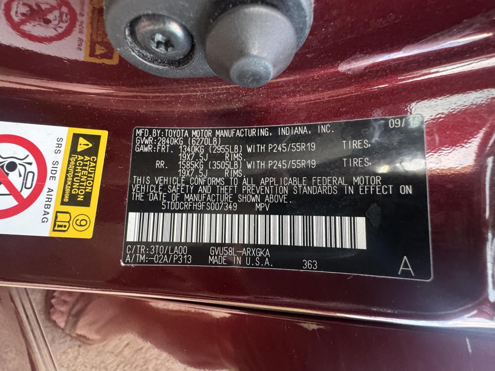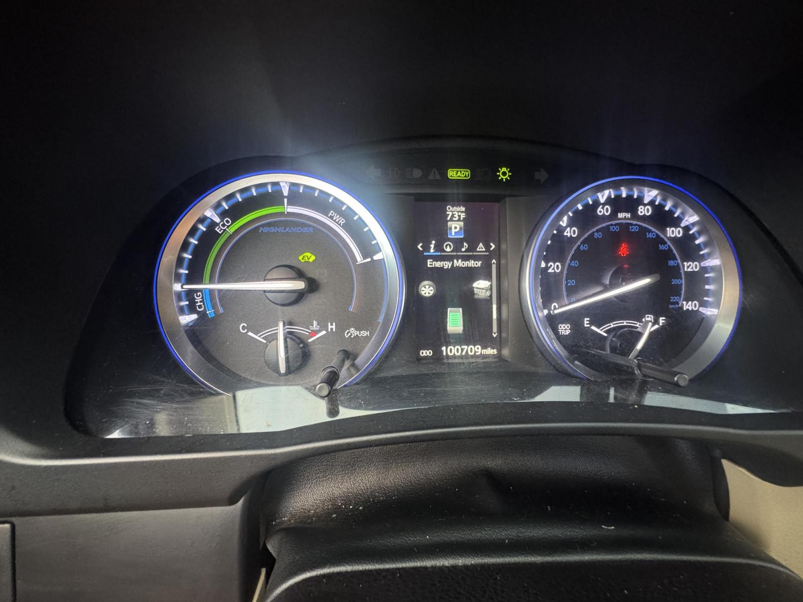 Color-keyed rear spoiler with LED center high-mount stop light · Power tilt/slide moonroof with sunshade and jam protection · 19-in. 5-spoke Chromtec® alloy wheels with P245/55R19 105S tires · Adjustable power liftgate with jam Protection · High Solar Energy-Absorbing glass on front and rear side windows · Hybrid Synergy Drive® blue accent badges · Color-keyed heated power outside mirrors with memory function, turn signal and blind spot warning indicators, puddle lights and folding features · Black front and rear mudguards · LED Daytime Running Lights with on/off feature · UV reduction glass on all windows · Privacy glass on rear side, quarter and liftgate windows · Color-keyed outside door handles · Flip-up rear hatch window · Windshield wiper de-icer · Integrated fog lights · Projector-beam halogen smokedchrome- accent headlights with auto on/off feature · Washer-linked variable intermittent windshield wipers and intermittent rear wiper · Chromtec® roof rails · Driver Easy Speak — driver voice Amplification · Entune™ Premium JBL® Audio with Navigation and App Suite — includes the Entune™ Multimedia Bundle , Entune® App Suite, Intelligent Touch controls, SiriusXM Radio with 90-day complimentary All Access trial, HD Radio™, HD predictive traffic and Doppler weather overlay, AM/FM cache radio, and Gracenote® album cover art · Cruise control · Integrated backup camera with dynamic gridlines · Four cargo area tie-down cargo hooks · Rear liftgate window defogger · Soft-touch upper door trim with woodgrain accent, leatherette-trimmed door armrest area with satin chrome interior door handles · Front- and second-row-seat reading lights · Power windows with auto up/down and jam protection in all positions · Power door locks with shift-linked automatic lock/unlock feature · Perforated leather-trimmed heated and ventilated front-row seats; 8-way poweradjustable driver's seat with memory function and power thigh support and lumbar support; 4-way power-adjustable front passenger seat; perforated leather trimmed second-row captain's chairs with side table · Blue LED ambient lighting on interior of front and rear doors and in-dash shelf · Second-row retractable window sunshades · Cargo area lights · Digital clock · Smart Key System on front doors and liftgate with Push Button Start and remote keyless entry system with illuminated entry · Three 12V auxiliary power outlets · 4.2-in. color LCD Multi-Information Display in meter cluster with odometer, current/average fuel economy, cruising range, average speed, AWD torque distribution , cruise control guide, navigation with turn-by-turn directions, audio status, hands-free incoming call notices, telephone information, ECO Driving Indicator and energy monitor · Leather-trimmed tilt/telescopic 3-spoke steering wheel with metallic accents and audio, Multi-Information Display, Bluetooth® hands-free phone, voicecommand, cruise control and multimedia controls · Overhead console with maplights, sunglasses storage, conversation mirror and HomeLink® universal transceiver · Soft-touch in-dash shelf with easy cable management feature · Eight cup holders and four bottle holders · 24.5-liter soft-touch roll-top center console with removable utility tray · Optitron instrumentation with blueilluminated speedometer and tachometer/hybrid system power meter and 4.2-in. color LCD Multi-Information Display · Auto-dimming rearview mirror · One 120V auxiliary AC power outlet · Three-zone automatic climate control with air filter, separate second-row control panel, individual temperature settings for driver, front passenger and rear-seat passengers, and second- and third-row